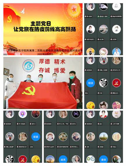 3月25日晚,齐医附属二院援助哈尔滨救治医疗队临时党支部组织召开第一次网络视频党员大会,院长、党委副书记武立刚同志讲话,临时党支部书记、副院长刘波同志主持会议并讲话,临时党支部副书记、医务部主任于海明、组织委员吕禄廷、宣传委员张琳、纪检委员张志伟等28名正式党员,7名预备党员,6名积极分子参加会议。