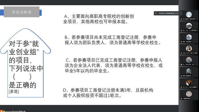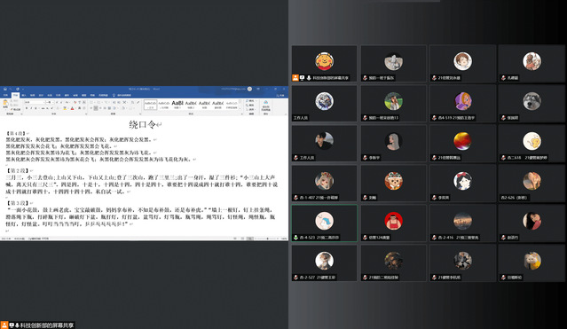 主持人首先为同学们播放了创客周宣传视频,通过观看视频,同学们对当前国内科创产业园和创客文化的发展态势有了初步了解;为调动学生们的动手实践热情,激发他们的创新思维能力,全体同学通过线上“棉花糖塔游戏”进行了互动,大家以寝室为单位,通过手中简易的材料,亲自动手实践,努力将棉花糖置于“金字塔”的顶端,追求自身创意的实现,实现了创新思维的碰撞;绕口令抢答环节中,同学们在三段绕口令中随机选择一段进行尝试,学生们自告奋勇、积极参与,在互相比拼中不仅锻炼了自己的交流能力,也实现了自我突破;在科创知识抢答环节,学生们参与热情高涨,纷纷展示出自己的创客知识文化储备。