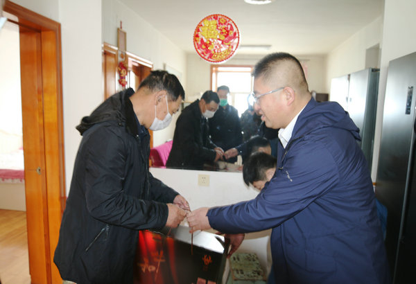 4月23—24日,外科第三党支部书记、肛肠外科主任周扬同志带领支部成员泌尿外科一病区主任刘涛、泌尿外科二病区主任王立鹤、组织委员、眼科副主任宫学武、纪检委员、普外科护士长孟庆爽、泌尿外科一病区护士长彭飞飞、血管外科护士长李露、宣传委员孟尹共八名同志带着慰问品,一同去慰问支部的七名援哈英雄队员家属,将医院和党支部的关心、支持与帮助送到了出征队员及家属心中,以此表达医院和党支部对出征队员满满的关爱和敬意。