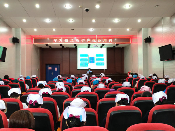 4月26日下午,齐医附属二院护理部在培训基地多功能厅举办“多发伤急救护理规范培训”,护理部外科系护士长翟婷婷主持会议,急诊医学科护士长刘娜作专题培训,全院护士长及科室骨干80余人参加培训。