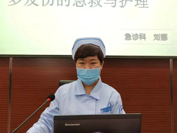 培训会上,刘娜护士长对多发伤的急救与护理进行了系统的讲解,从多发伤的概念、临床特点出发,详细的讲授多发伤的评估、救治以及急救护理,最后介绍了多发伤护理的新进展。作为拥有丰富急诊急救临床管理经验的护士长及急诊专科护士,她强调护理人员要培养独立思考能力,面对急危重症患者要运用整体护理的临床思维。本次培训主题新颖,内容丰富而全面,让每位与会人员收获颇多,受益匪浅,进一步提高了我院护士的急诊急救知识水平,使急诊急救护理更加专业化、规范化。