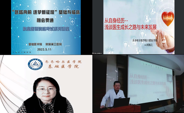 为适应高等医学教育的新形势、新理念,进一步强化广大医学生对执业医师资格考试的认知,提高学生的职业认知和规划意识,激发学生服务人民的家国情怀,增强学生的使命感和责任感。基础医学院与齐齐哈尔医学院附属第三医院联合组织了“医路向前 逐梦新征程”基础与临床融会贯通——执业医师资格考试系列讲座。