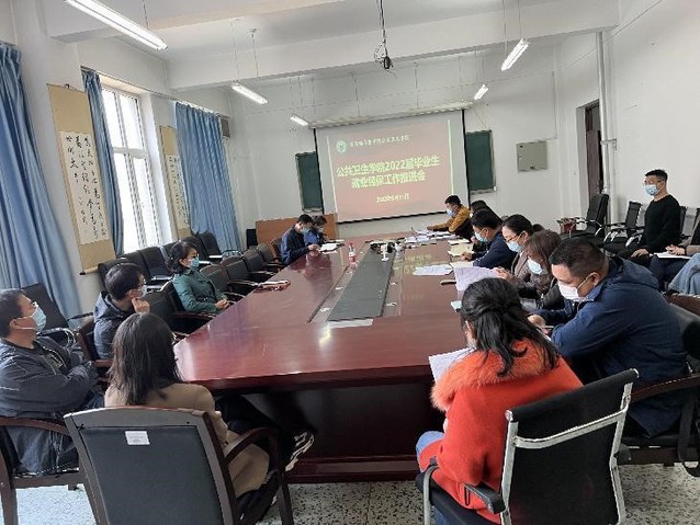 为抓住当前就业黄金期,强力推进2022届毕业生就业工作,5月11日下午,公共卫生学院通过线上、线下相结合的方式召开2022届毕业生就业包保工作推进会,学院全体班子成员、辅导员、班主任、教研室主任参加会议,会议由党总支副书记薛海峰主持。