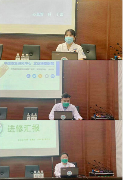 活动中,心血管内科一病区(心脏康复)于蕾、康复医学科马新宇、陈仲航分别以《中南大学湘雅医院心脏康复治疗技术》《盆底与产后康复治疗技术》《Bobath康复治疗技术》为题,对所进修医院先进诊疗技术、管理理念、服务流程、自身培养等方面作了详细讲解,讲座内容图文并茂,生动有趣,易于理解,并向大家分享学习成果,交流活动现场气氛热烈,使与会人员受益匪浅。