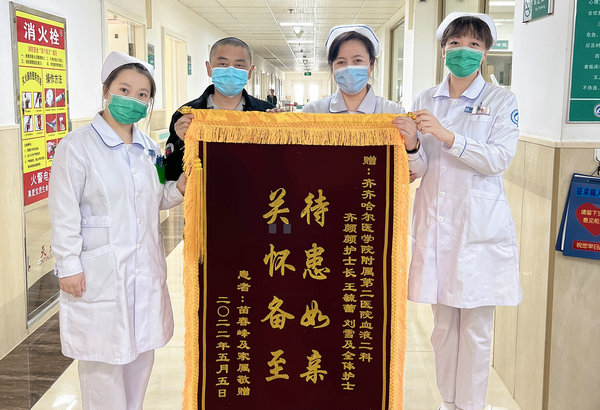 患者苗先生激动的说:“非常感谢血液风湿二病区的医护人员对我无微不至的照顾,让我重新看到了生的希望。”这面鲜红的锦旗,传递的不仅仅是对血液风湿二病区医疗和护理水平的肯定,更体现了医患之间的和谐关系。