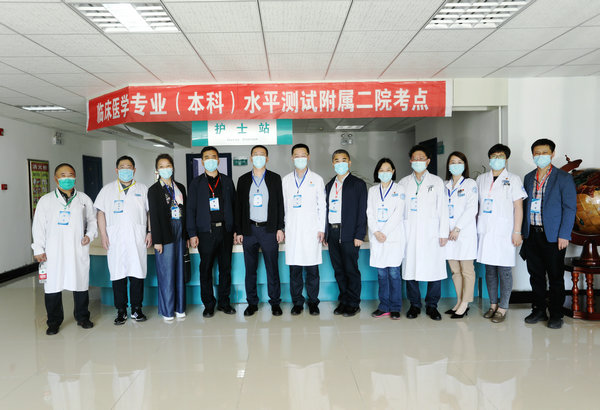 此次考务工作在学院统一部署下,医院对考试工作高度重视,严格按照疫情防控要求,制定了详细的考试工作方案和考试流程,抽调49名临床教师作为考官,并按考站进行了考官培训;召开考务工作会议,从相关部门抽调包括引导员、录分员、志愿者和安保人员等考务工作人员40余人,组织全体工作人员进行实地演练、走流程,找漏洞,查不足。学院领导以及医院领导先后对考场准备情况进行实地查看和指导。在各级领导的关心支持下,经过全体考官、工作人员的共同努力,保证了考试工作的顺利进行。