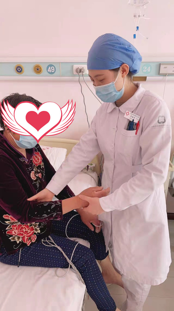 奶奶的情绪稍微稳定了下来……就这样,我只要一上班就去看她,子女不在身边,我就协助她翻身、叩背、指导床上肢体活动……很快,奶奶就要出院了,老太太眼里含着泪花紧紧握着我的手说:“闺女,这些天真是麻烦你了,你们工作真是太辛苦了,你就像我的亲女儿一样!”我赶紧说:“奶奶,您太客气了,我只是做了我该做的工作。”