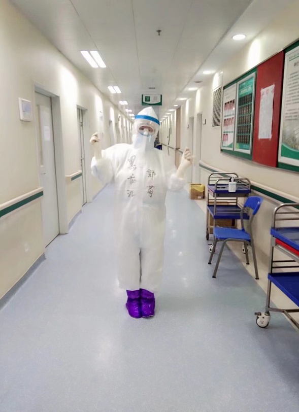 2020年新年伊始,新冠肺炎来势汹汹,全国人民众志成城抗击疫情。郭萌同志多次积极响应党中央和省委、省政府号召,五次自愿报名,奋斗在疫情防控最前线。她于2020年2月支援湖北省武汉市,在支援武汉的58天中,很多感动的事情都历历在目。刚进入病区时,郭萌所负责的一位的大爷小心翼翼地问她:“孩子,能我给拿块肥皂不,这衣服该洗洗了,来的匆忙,都没有带。”由于当时物资紧缺,病区内并没有这项储备物资,经过沟通,只能让家属来送。当她告诉大爷,需要的物资可以让家属送到指定地点,他们会有专业的转送人员运送过来,大爷的一句话当时让她泪水止不住。大爷说:“我没有其他的家属了,我的家属都在隔离。”这句话,让郭萌同志瞬间破防,能清楚的感觉到眼泪从护目镜中留下。“你放心吧大爷,包我身上”。回到驻地后,她把自己省下来的生活物资及牛奶水果打包都带给了大爷及病区内其他有需要的人,病区内的患者都表示感动与感谢。