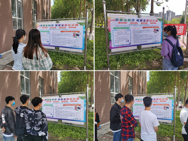学生观看实验室安全宣传板