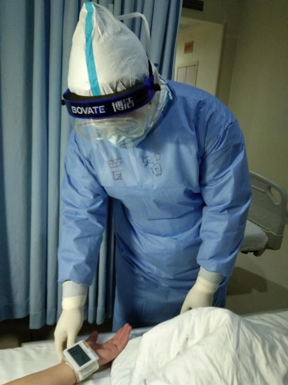 2020年初,一场新型冠状病毒肺炎疫情肆虐荆楚大地,武汉封城。当时他正在病房工作,突然听到护士长说医院呼吁全院医务人员奔赴武汉疫情前线支援的消息时,第一时间递交了请战书,刚开始听说自己没有入选,马上和护士长通电话,表示自己非常想去抗疫前线,后来确定有自己了,非常的高兴,以选入援助武汉医疗队为光荣。学习那些革命先烈,保家卫国的英雄,国家需要的时候挺身而出,2020年2月2日,他作为黑龙江省第二批援鄂医疗队队员,逆风飞翔,抵达武汉华中科技大学同济医学院附属协和医院西院区。面对“比想象中严峻”的隔离病房,他展现了顽强的意志品质。进入病房时穿得一层又一层,口罩、帽子、护目镜、防护服一样都不能少,N95口罩喘闷,留下勒痕,在这种情况下,他迎难而上,自我克服进入隔离病舱工作,护目镜上全是雾,在需要穿刺采血或是输液时根本看不清,只能从护目镜小小的缝隙中仔细地看,凭着丰富的经验做到一次穿刺成功,减少了患者反复穿刺的痛苦,在繁琐辛苦护理工作中,他体重急剧下降,疲惫之下,由于当地炎热的天气,病区因为疫情不能使用空调,只能采用“抱冰”的解暑方式,虽然辛苦,他毫无怨言,为患者提供无微不至的护理,给他们打气,在有患者康复出院的时候,会把好消息告诉每一位病人,让他们看到希望,收获了患者一封封的表扬信。他在武汉工作期间,他向党组织真诚地递交了入党申请书,被确定为入党积极分子,他积极向党组织靠拢,并时刻以共产党员的标准来严格要求自己,在疫区救治前线展现一名护理工作者的责任与担当。2020年3月30日圆满完成任务返还家乡,历时五十八天,体重锐减30斤。