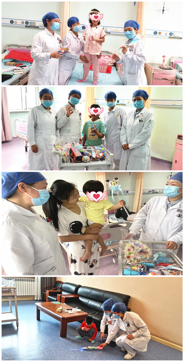 6月1日上午,儿科副主任亢杨和护士长赵艳茹为可爱的小患者们送上了精美的礼物和诚挚的祝福。愿小朋友们在医院度过一个开心、快乐的“六一”国际儿童节,也希望他们早日恢复健康,幸福快乐的茁壮成长。