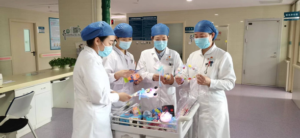 儿科副主任亢杨和护士长赵艳茹带领医护人员为小患者选礼物