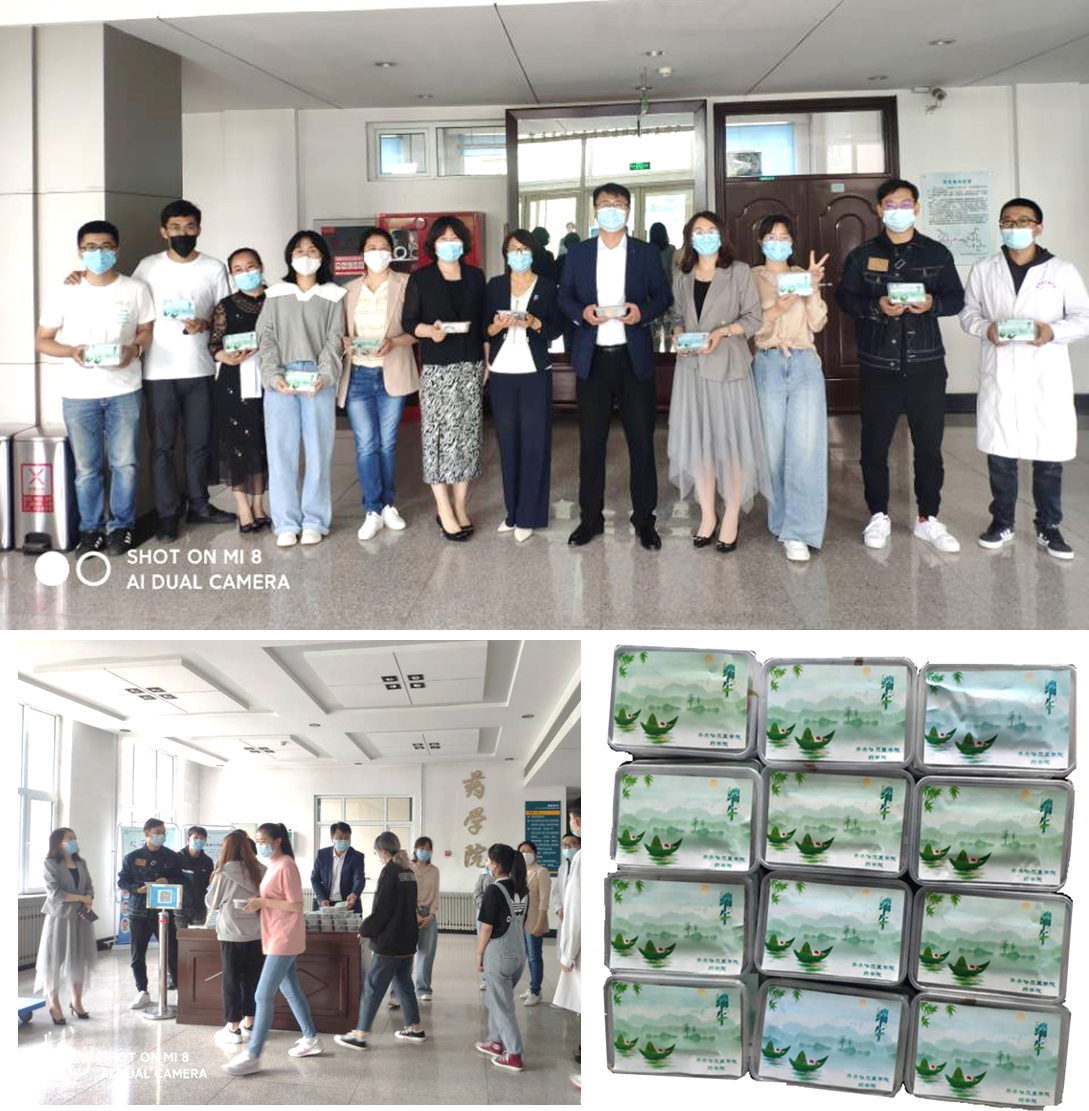老师们向全体学生致以美好的节日祝愿,并将药学院精心为同学们准备的带有浓郁文化色彩的端午节七彩葫芦、香粽套盒和学校精心为同学们准备的端午节礼包交到本科生、研究生和导师代表手中,让药学院师生感受中华传统节日气氛,共同抒怀诚挚的师生情怀。