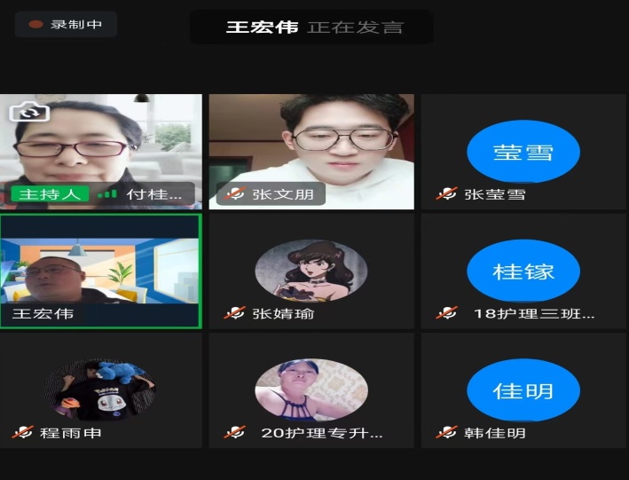 为推进2022届毕业生高质量就业, 3月20日下午,护理学院邀请往届优秀毕业生王宏伟、张文朋、黄竞仪通过线上云平台进行就业经验分享。护理学院党总支副书记付桂华、毕业班辅导员和2022届毕业生100余人参加会议。