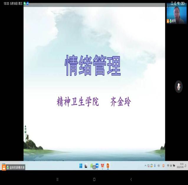 会上,史倩老师以“疫时无忧,静等花开”为题,分别从案例分析、技能训练、理论学习、自助练习等四个方面进行了讲解,通过典型案例分析,提出了相关的解决方法,使同学们认识到心理健康的重要性,同时也教会大家在疫情期间通过技能训练、理论学习、自助练习三个方面进行心理调节。齐金玲老师以“情绪管理”为题,分别从情绪管理的重要性、如何进行情绪管理等方面进行讲解,介绍了情绪管理在疫情封校期间和学习生活中的重要性,并介绍了情绪管理的方法。指导同学们运用这些方法进行情绪管理。