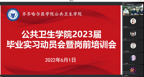 为加强毕业生实习管理,确保毕业实习和毕业论文专题实践工作的顺利进行。2022年6月1日,学院通过腾讯视频会议召开2023届毕业实习动员会暨实习岗前技能培训会。学院党总支书记史孝志、副院长白丽、辅导办主任刘兴来、辅导员李晓璇、教务科陈明琪和2018级预防医学专业和2019级公共事业管理、信息管理与信息系统和健康服务与管理专业的全体同学参加了本次会议。会议由教务科陈明琪主持。