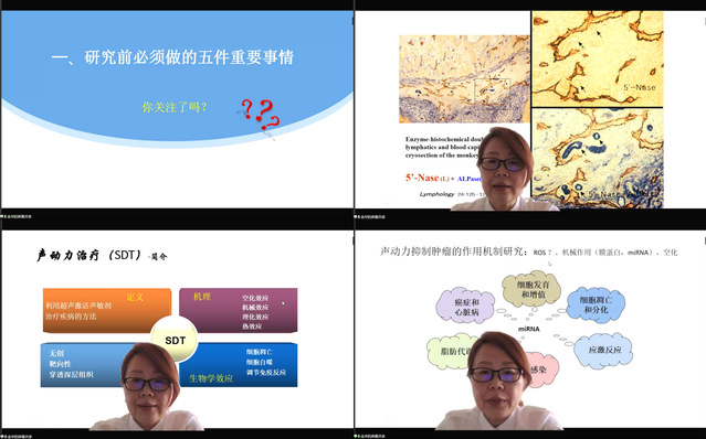 郑金华教授以《超声联合声敏剂抑制OSCC应用基础研究总结——浅谈青年学者如何获得研究思路》为题,结合自己的学习、科研经历,从青年教师的科研发展、学科团队的培育、科研方向凝练等方面进行了深入浅出地讲授,并利用成功的科研工作案例详细阐述开展科研工作的可行路径。她指出,教学科研互相促进,需要共同发展,基础实验研究源自于临床问题,以解决临床问题为主导的科项目最具有顽强生命力,也是学科长期发展、培养高质量研究生的必经之路,持续开展转化医学,加强“临床与基础合作”、“医工合作”是发展基础医学研究,促进医学研究成果转化的根本途径。