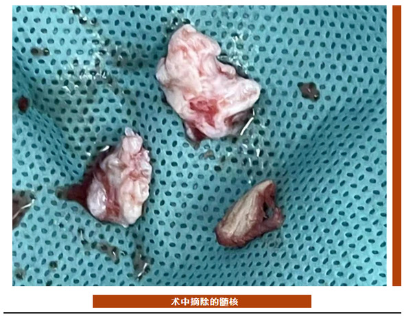 05月23日21时,骨外一科团队在麻醉科及手术室的配合下,开始为患者行UBE(单侧双通道脊柱内镜)腰椎间盘摘除术+椎管减压术。麻醉效果满意后,将患者摆成俯卧位卧于手术架上,应用C型臂透视定位腰5骶1椎间隙和椎弓根确定手术切口,标记后,于定位点处做1厘米左右皮肤切口,穿刺套管逐层扩大,安装关节镜,放入关节镜镜头和低温等离子刀头,应用磨钻磨除腰5椎板下缘到黄韧带止点,见黄韧带组织增生、肥厚,更换软组织射频刀头,止血,咬除黄韧带后暴露椎管内脂肪组织,低温等离子止血,神经拉钩保护性牵拉神经根,见游离的髓核组织,取出多块髓核组织,见神经根与周围组织粘连较重,松解神经根周围粘连组织,探查椎管间隙见间隙破口,从破口处取出游离椎间盘组织及部分终板,低温等离子刀清理残余组织,彻底止血后,放置引流条1枚,缝合切口。手术过程顺利,麻醉复苏后病人安返病房。