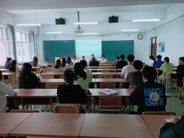 为了让同学们更快地进入实习角色,规范实习行为,保障实习安全,医学技术学院于2022年6月10日,通过线上线下相结合的方式,为2023届400名毕业生召开实习岗前教育大会。学院党委副书记佡思维、医学技术学院辅导员李冬冬、崔莹、李汝超及全体实习学生参加会议。