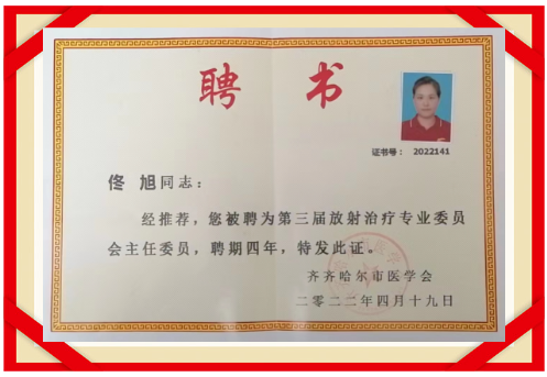 近日,由齐齐哈尔医学会、齐齐哈尔医学会肿瘤放射治疗专业委员会主办的齐齐哈尔医学会第三届肿瘤放射治疗专委会换届改选会隆重召开。会议宣布由齐齐哈尔医学院附属第三医院肿瘤分院副院长、放疗科主任佟旭教授当选为齐齐哈尔医学会肿瘤放射治疗专业第三届委员会主任委员,罗福申、陈志明教授为副主任委员,王大鹏、杨光润等人为委员。