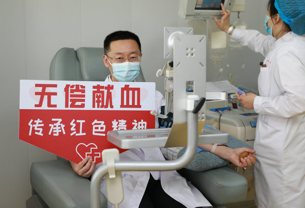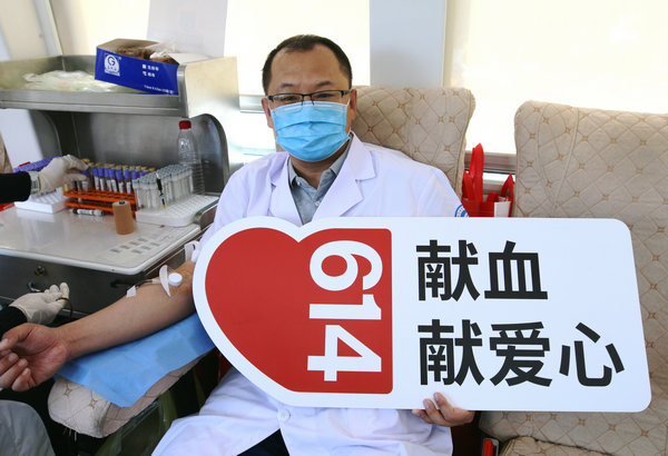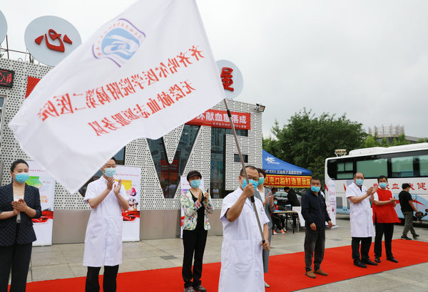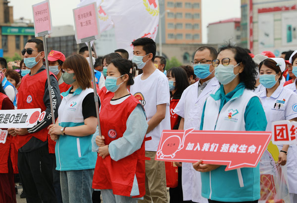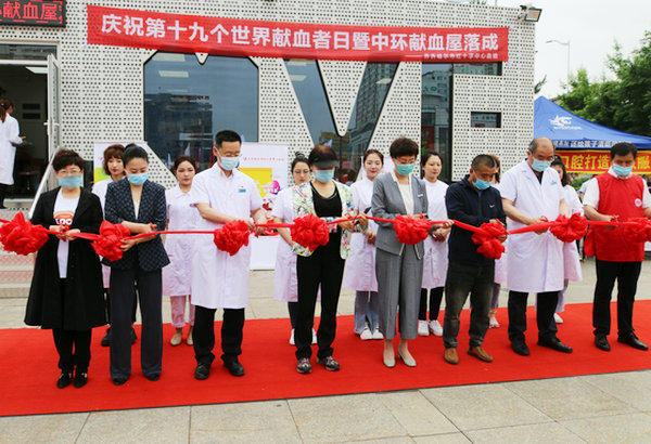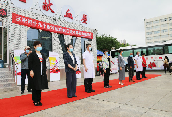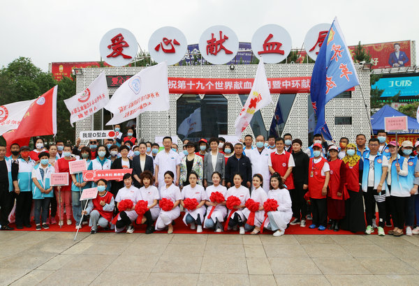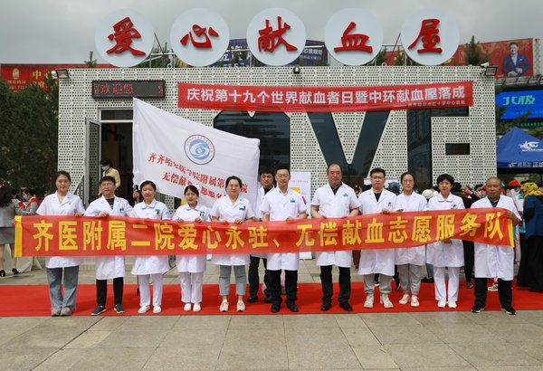 6月14日是第19个世界献血者日,今年的活动口号是:“献血是一种团结行为。加入我们,拯救生命。”当天,由市无偿献血工作委员会、市卫生健康委员会主办,市中心血站、市无偿献血志愿者协会承办的“庆祝第十九个世界献血者日活动”在市中环广场举行。齐齐哈尔市卫生健康委员会副主任崔微向我院授予“齐齐哈尔医学院附属第二医院无偿献血志愿服务队”队旗,院长、党委副书记武立刚、副院长鲍红光等领导出席活动仪式并为中环献血屋落成剪彩,来自齐医附属二院10名献血志愿者及我市10个爱心团体单位参加活动。