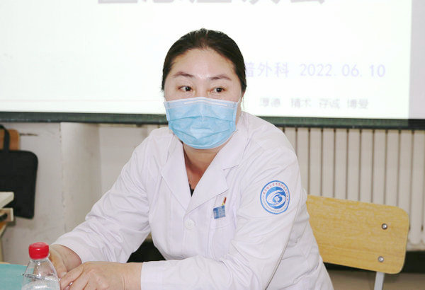 会上,普外科主任王峰对参加座谈会的患者及家属的配合表示感谢。王峰主任表示,普外科是齐医附属二院传统科室、优势科室,具有优良的文化传统和先进的技术力量,在科室发展过程中始终坚持以病人为中心,随着时代的变迁,管理团队意识到新时代医患关系逐渐发生变化,为进一步全面提升患者的诊疗体验,提高科室运转效率,部分医疗管理细节亟待完善,本次座谈会希望患者及家属坦诚沟通,希望全体医护人员细心倾听患者所说,进行深入思考讨论,以提升医疗服务质量效率。