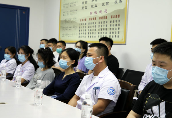 期间,武立刚院长、刘波副院长分别结合个人的成长经历与医生的职业素养等方面,就学员们的工作学习碰到的问题进行了答疑解惑,并深情寄语学员要以“九层之台,起于累土”的态度,注重轮转各科的临床基本功的学习,博采众长,培养跨学科能力,构建系统的知识体系,做一名内外兼修的具备多学科综合素养的住培医师。