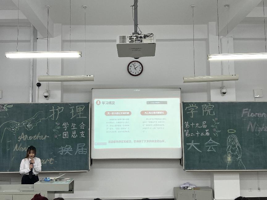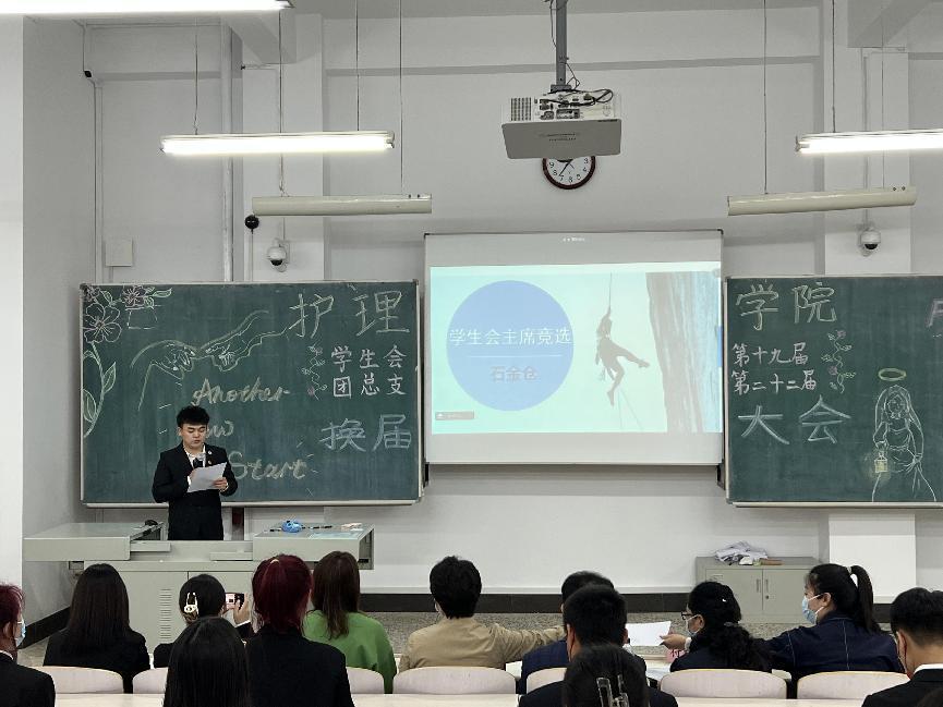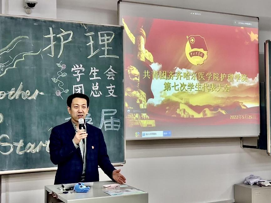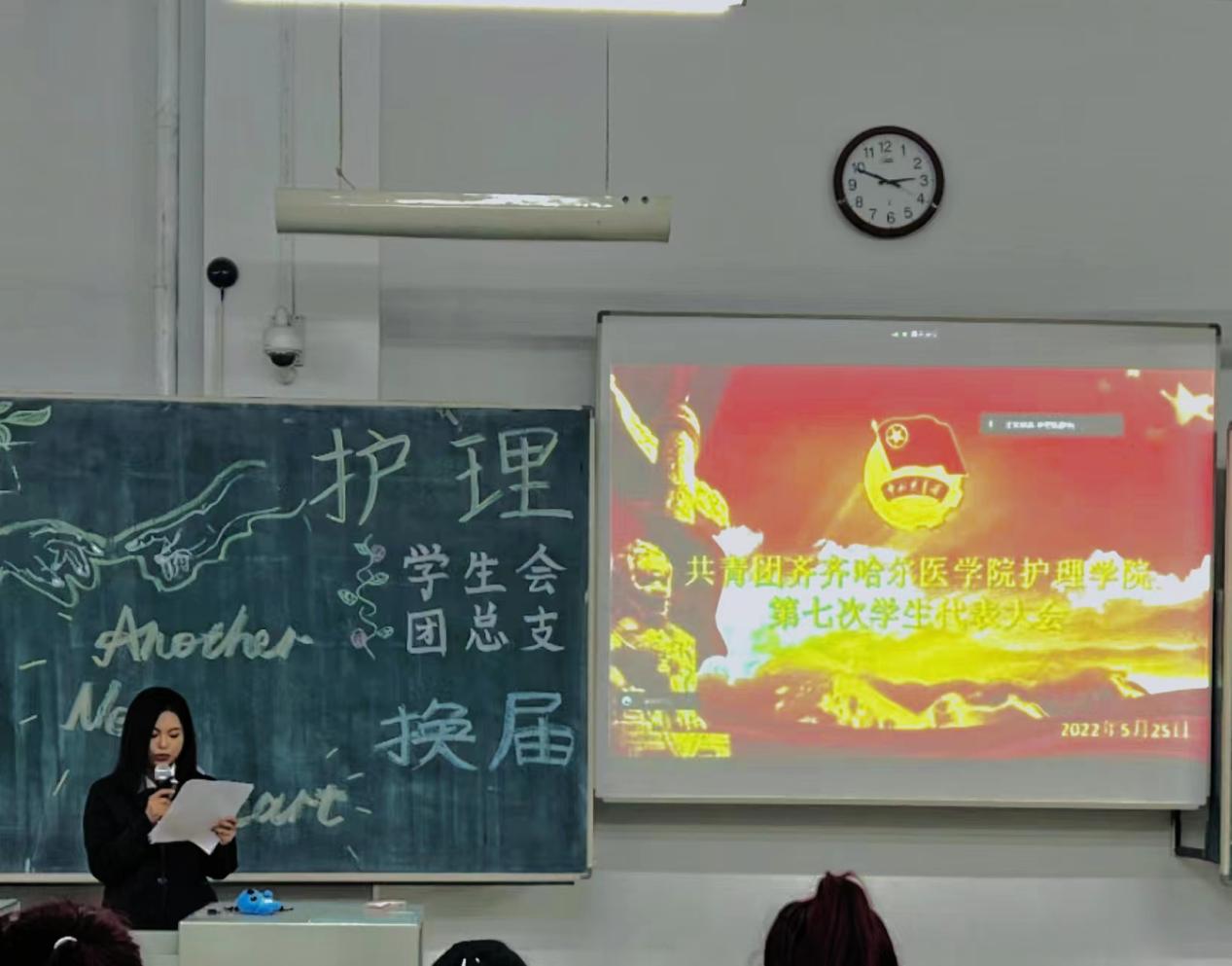 为做好齐齐哈尔医学院第七次学生代表大会和护理学院新一届主席团成员选举工作,根据《齐齐哈尔医学院学生代表大会制度》《齐齐哈尔医学院学生会章程》有关规定,5月25日,护理学院在主楼北区104教室召开了第二次学生代表大会。护理学院党总支书记李强、副书记付桂华、辅导办主任、团总支书记王坤、辅导员逢丽红、肖琼、吴禹及学生代表出席本次大会。按照疫情防控要求,本次大会采取线上、线下相结合的方式。