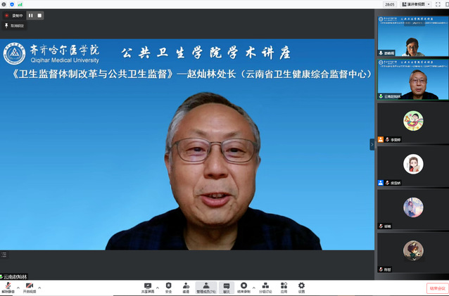 为提高学院专业建设及学科建设水平,推动公共卫生硕士学位点建设,6月24日,公共卫生学院以“能力作风建设年”活动为契机,邀请云南省卫生健康综合监督中心学校与公共场所监督处处长赵灿林进行线上讲座,讲座由公共卫生学院副院长娄峰阁主持,包含学院往届毕业生在内的近百余名师生参加了本次讲座。