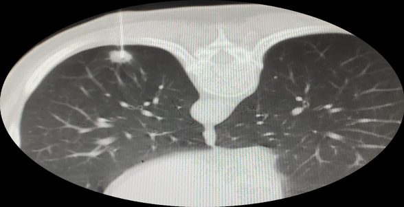 近日,我院介入科在CT引导下应用活检针成功取出肺内1cm微小病灶,术后,患者肺部无局部出血及血气胸等并发症发生。术后病理确诊为阳性报告。高超的介入技术有效解决了肺部外周及纵膈病变的定性诊断难题,为患者的下一步治疗提供可靠的依据。