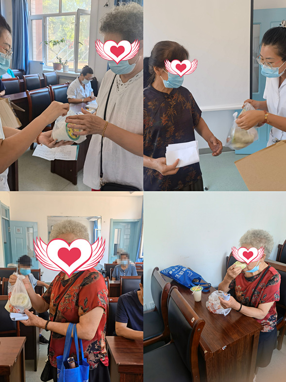 我院光荣社区卫生服务中心为体检的老年人准备了爱心早餐