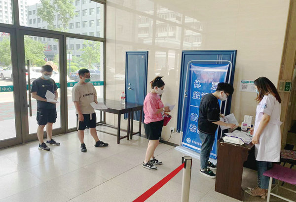 为了切实落实防控要求,住培办制定了完善的防疫方案并严格落实。考试前,根据考务任务时间不同,统一组织所有考务人员及考生进行核酸检测。考试前,所有考生凭身份证、准考证、省内48小时核酸检测报告、《考生健康承诺书》及“龙江健康码”“行程码”,在检测体温正常后进入考场。所有人员在考核过程中全程规范佩戴口罩,考场均备有手消、洗手液、一次性口罩等防疫用品。为应对突发情况,制定了相应的应急方案,并设立了独立房间作为临时隔离候考室、临时隔离考试室。