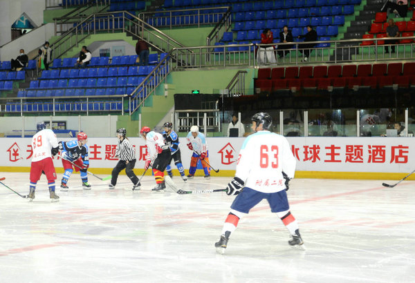 比赛现场,洁白、平整、宽阔的冰面上,身着鲜艳带有齐医附属二院字样服装,戴盔披甲,手持球杆的冰球老将们,快速地走位、闪躲、腾挪,高速的滑行、灵活的运球、有力的射门,是齐齐哈尔医学院附属第二医院队展现出来的风采。不时有运动员因冲得太急摔倒在地,又立马爬起来加入战阵。赛场充斥着球杆相撞的“咣咣”声、厚重的保护服相互撞击时的闷响、场边挡板被撞击的回声……比赛过程紧张激烈,观赏性极高。