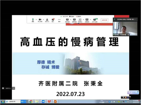 7月23日,黑龙江省医师协会全科医师专业委员会换届大会如期召开,齐医附属二院全科医学科、中西医结合科主任张秉全教授当选常务委员,并在大会中做“高血压的慢病管理”学术报告。