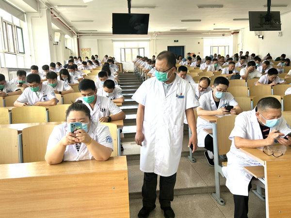 理论考核在住培基地多功能厅和阶梯教室举行,大家在线上完成答题,并完成病历书写规范考卷,考核合格率100%。技能考核中,要求每一位医师、技师、药师在规定时间内熟练完成单人心肺复苏术,其中医师考核内容除了进行心肺复苏技能操作外,还考核了气管插管、体格检查等操作,为加深巩固考核效果,每一个环节设置考官,综合评级。考核期间,监考教师严格考场纪律,考场秩序井然有序,过程顺利,无违规违纪情况发生。