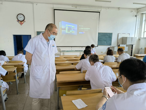 副院长鲍红光观摩考试过程,他指出,“三基三严”培训是提高医务人员整体素质和医疗水平的重要途径。通过业务学习、操作训练、专业培养、自学函授等途径,对各级专业技术人员进行多种形式、全方位的培训,从而提高专业技术人员整体素质,保障医院医疗质量的持续发展。技能考核期间,鲍红光副院长对参考人员动作及时点评,做到以考代练,以考促学,做到人人达标,同时他还理论授课,将技能操作与之相结合,确保所有参考的医务人员听有所获、学有所得,更好地为人民群众提供优质、安全、满意的医疗服务。