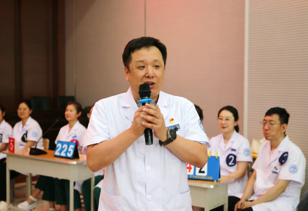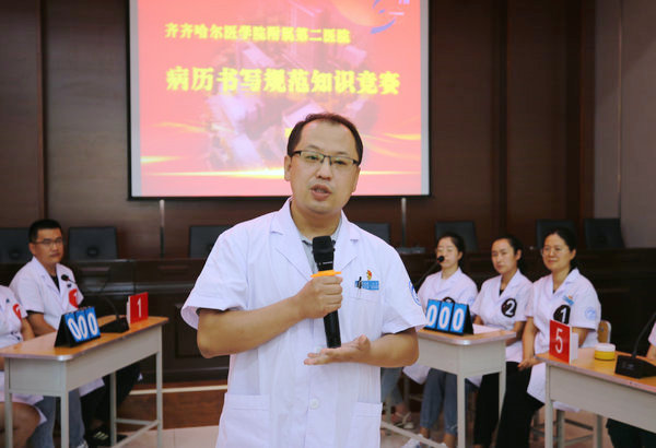 决赛现场,医务部主任于海明致辞。他表示,病历书写是每位临床医生必备的医疗技能,其水平的高低直接关系到医疗质量和医疗安全。病历书写不仅反映患者的病情,体现着医院的专业技术、医疗质量和管理水平,还是保护医患双方的重要法律文书。而此次举办病历书写竞赛旨在让临床医师养成良好的病历书写习惯,写出高质量、规范化的病历文书。同时,以本次竞赛为契机,把核心制度落实好、贯彻好;以踏石留印、抓铁有痕的力度,以锲而不舍、善作善成的作风,在医院持续发展的道路上谱写出属于“二附人”的风采。