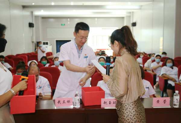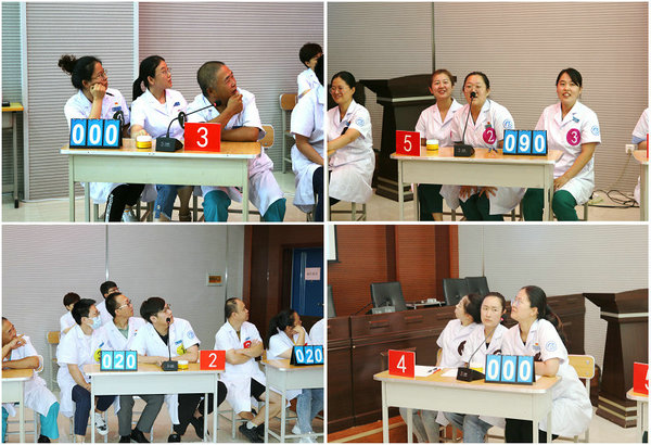 经过初赛激烈的角逐,儿科、呼吸内科一病区等6支代表队进入到本次决赛。本次决赛由“必答题”、“抢答题”、“风险题”、“现场观众答题”等四个环节组成。在比赛过程中,参赛队伍积极踊跃,赛场气氛热烈,场上比分你追我赶,队员们的精彩表现,赢得了现场观众的热烈掌声。期间,院领导们还为观看比赛的科室代表抽取幸运观众,并为他们送上精美礼品。经过现场评委的打分,最终呼吸内科一病区代表队获得竞赛一等奖,心血管内科一病区、泌尿外科二病区代表队获得竞赛二等奖,消化内科、内分泌科二病区、儿科代表队获得竞赛三等奖。