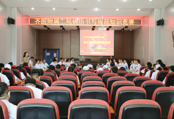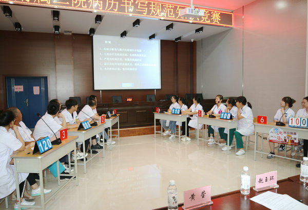 8月12日下午,值此第五个中国医师节来临之际,齐医附属二院医务部联合病案室在临床技能中心多功能厅举办“2022年病历书写规范知识竞赛”,院长、党委副书记武立刚、副院长鲍红光、赵玉环、刘波、党委委员、人事科科长黄莹、肿瘤外科一病区主任郑春雷、血液风湿内科一病区主任周虹担任竞赛评委,副院长刘波作点评,医务部主任于海明致词,病案室主任顾泽鑫宣读竞赛规则,儿科、泌尿外科二病区、消化内科、呼吸内科一病、心血管内科一病区、内分泌科二病区共6支代表队参加决赛,医务部咸阳主持比赛,各临床科室代表观看本次竞赛。