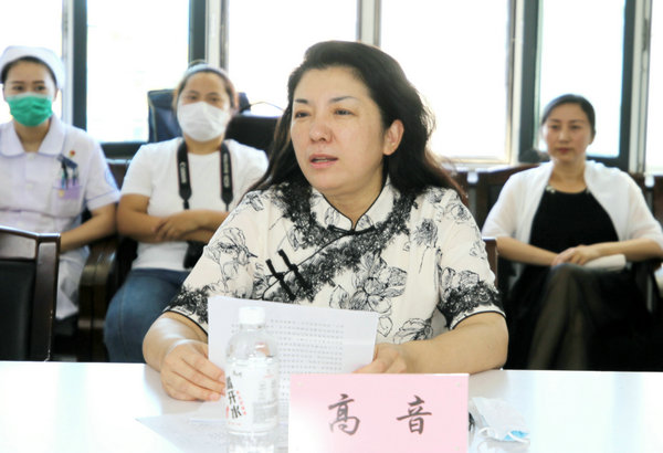 高音院长提出了本次调研座谈的目的、意义以及学科发展建设思路。高音院长指出,医学院护理学科是国家级一流本科专业建设点和专业硕士学位授权点,附属医院肩负着学生理论知识与实践技能培养的重任。未来,护理学科建设与国家教育部评估验收还需要护理学院和附属医院共同面对,需要双方深度合作、并肩战斗,携手向学院交出一份合格的答卷。