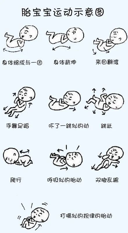 最后一种是宝宝有节律的蠕动,常常是打嗝的表现。前两种要计数在胎动之内,而第三种不计数在胎动之内。
