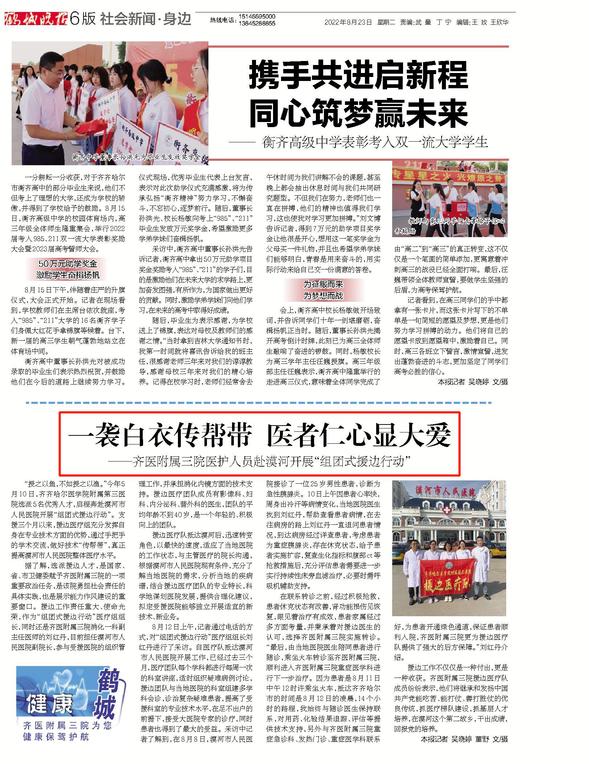 在联系转诊之前,经过积极抢救,患者休克状态有改善,肾功能损伤见恢复,眼见着治疗有成效,患者家属经过多方面考量,并秉承着对援边医生的认可,选择齐医附属三院实施转诊。“最后,由当地医院医生陪同患者进行随诊,乘坐火车转诊至齐医附属三院,顺利进入齐医附属三院重症医学科进行下一步治疗。因为患者是8月11日中午12时许乘坐火车,抵达齐齐哈尔市的时间是8月12日的凌晨,14个小时的路程,我始终与随诊医生保持联系,对用药、化验结果追踪、评估等提供技术支持,另外与齐医附属三院重症急诊科、发热门诊、重症医学科联系好,为患者开通绿色通道,保证患者顺利入院,齐医附属三院更为援边医疗队提供了强大的后方保障。”刘红丹介绍。