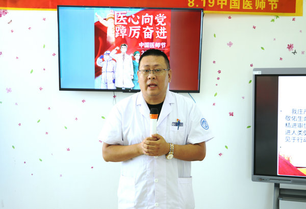 宣誓完毕,副院长王文林致辞。他代表医院领导班子向长期奋战在临床一线的全体医师们致以节日的问候和衷心的感谢,介绍了医师节的由来和设立,回顾了医院的发展历程,总结了医院取得的发展成就,并充分肯定了医院广大医师们作出的贡献和努力。