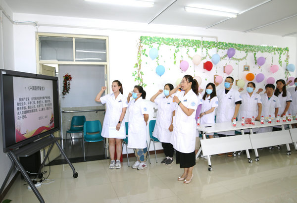 活动在国歌声中拉开帷幕,全体参会医师在医务室主任梁雪梅的领誓下,重温《中国医师宣言》。