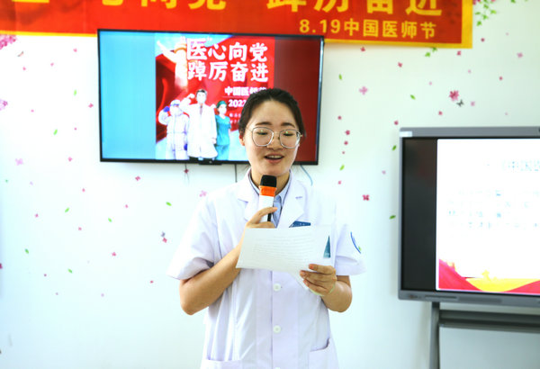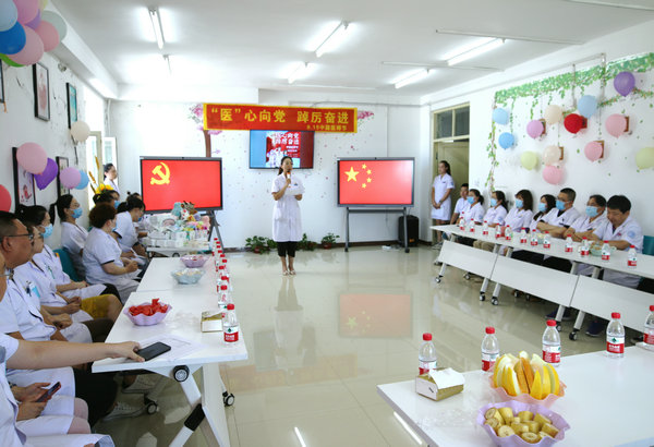 8月19日下午,齐医附属四院在心理调适楼7楼娱疗室举行“医心向党 踔厉奋进”第5个中国医师节主题庆祝活动,副院长李平讲话,副院长王文林致辞,医务室主任梁雪梅主持活动,来自临床科室医护人员及住培医师40余人参加活动。