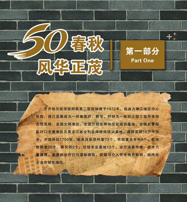 50年,弹指一挥间,在齐齐哈尔医学院附属第二医院的发展历程中,“附二”人写下了浓墨重彩、辉煌不朽的诗篇。