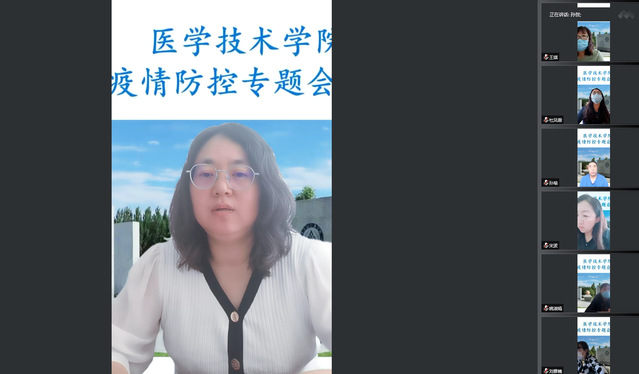 8月31日上午,医学技术学院采用线上方式召开疫情防控专题会议,就进一步做好校园疫情防控工作进行再推进再落实,强调全院上下要科学精准、齐心协力,既有力度更有温度地推动各项措施落细落实,切实筑牢校园疫情坚固防线。会议由张春晶院长主持,全体教师参会。