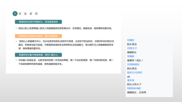 接下来,我院将针对大一新生继续开展教学、科研、学生管理、临床等方面的系列讲座,助力新生做好职业生涯规划,走好大学之路。筑梦的号角已经吹响,新征程、新梦想将在美丽的校园里再次启航!