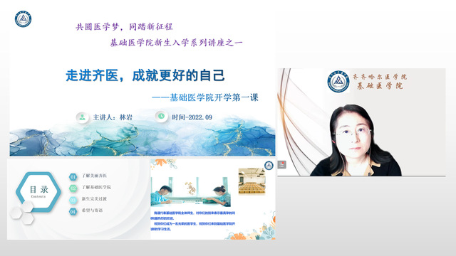 新生入学教育作为一种素质教育活动,可以帮助新生快速了解大学生活、适应大学学习、有利于今后长远发展。为了更好的让新同学了解齐医,尽快融入大学生活,基础医学院举办了“共圆医学梦,同踏新征程”——基础医学院新生入学教育系列讲座。9月4日上午,系列讲座正式开讲,基础医学院林岩院长首次开讲,讲座题目为《走进齐医,成就更好的自己》,讲座由辅导办主任吕钢主持,700余名2022级新生及辅导员参加。