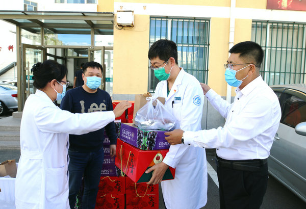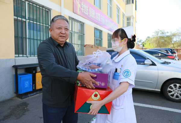 医院志愿者为援助大庆核酸采样队员家属送上慰问品